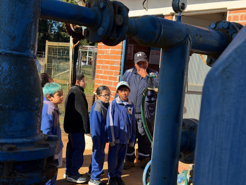 Más de 30 alumnas y alumnos asistieron a las dependencias del servicio sanitario rural del sector, para conocer el proceso de captación y distribución del agua que llega a cada una de las casas de Pehuén.