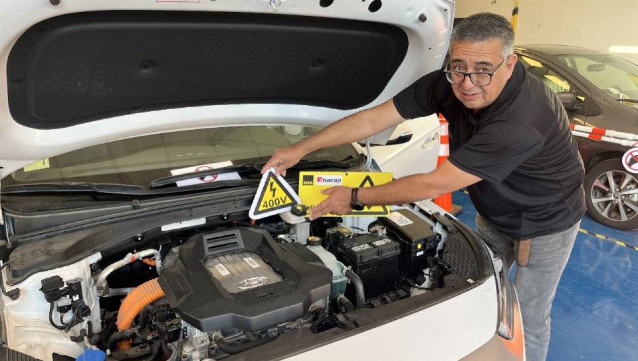 Respecto a la actualización de conocimientos en este nuevo rubro, indico que en lo relacionado con vehículos livianos, los aprendizajes van desde los protocolos de seguridad, mantención y revisión en los sistemas de alto voltaje; diagnóstico o mantención y reparación de vehículos eléctricos e híbridos para poder intervenir de manera segura.